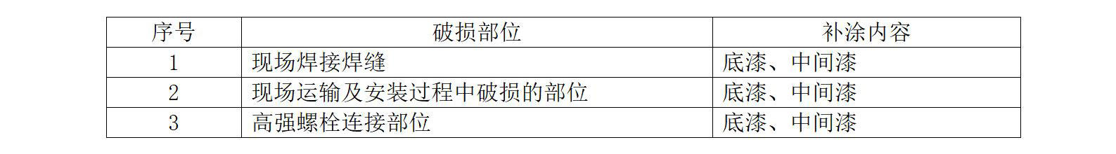 钢结构构件因运输过程和现场安装原因,会造成构件涂层破损,在钢构件安装前和安装后需对构件破损涂层进行现场防腐修补。