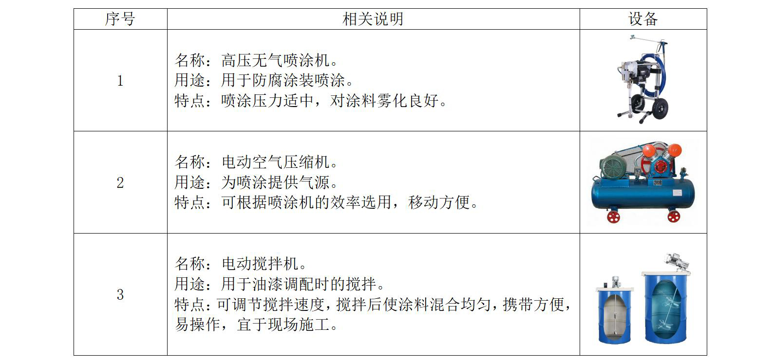 3.1、防腐涂装主要设备
